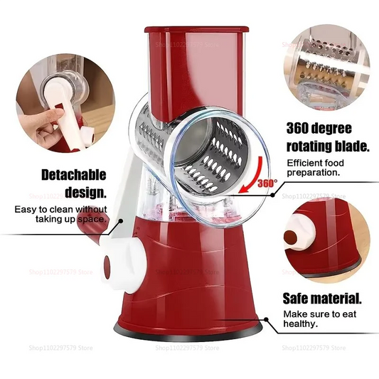 Vegetable Cutter & Slicer Manual Kitchen Cheese Chopper Machine with 3 Sharp Drums Multifunctional Garlic Potato Shredder 2025